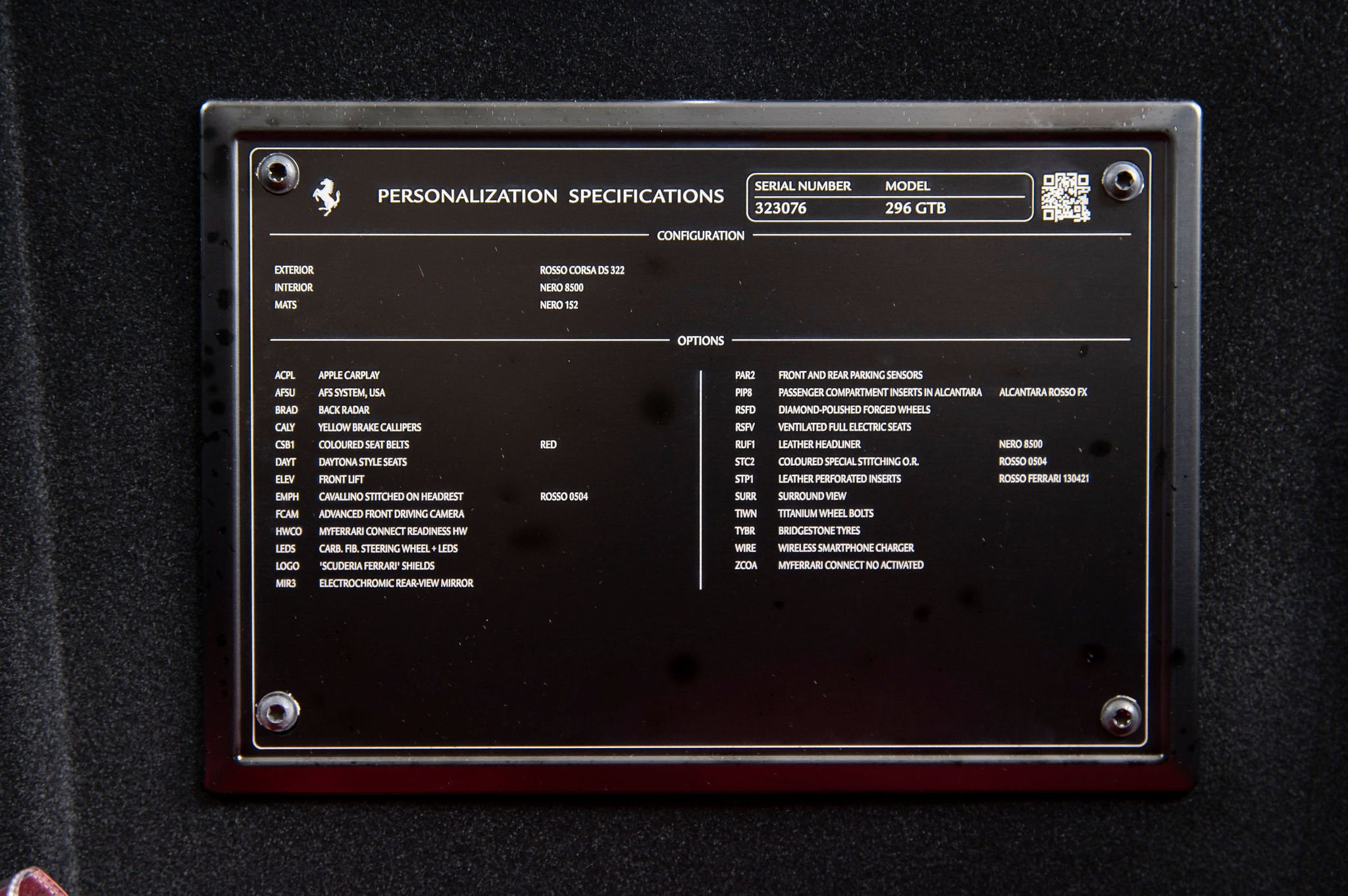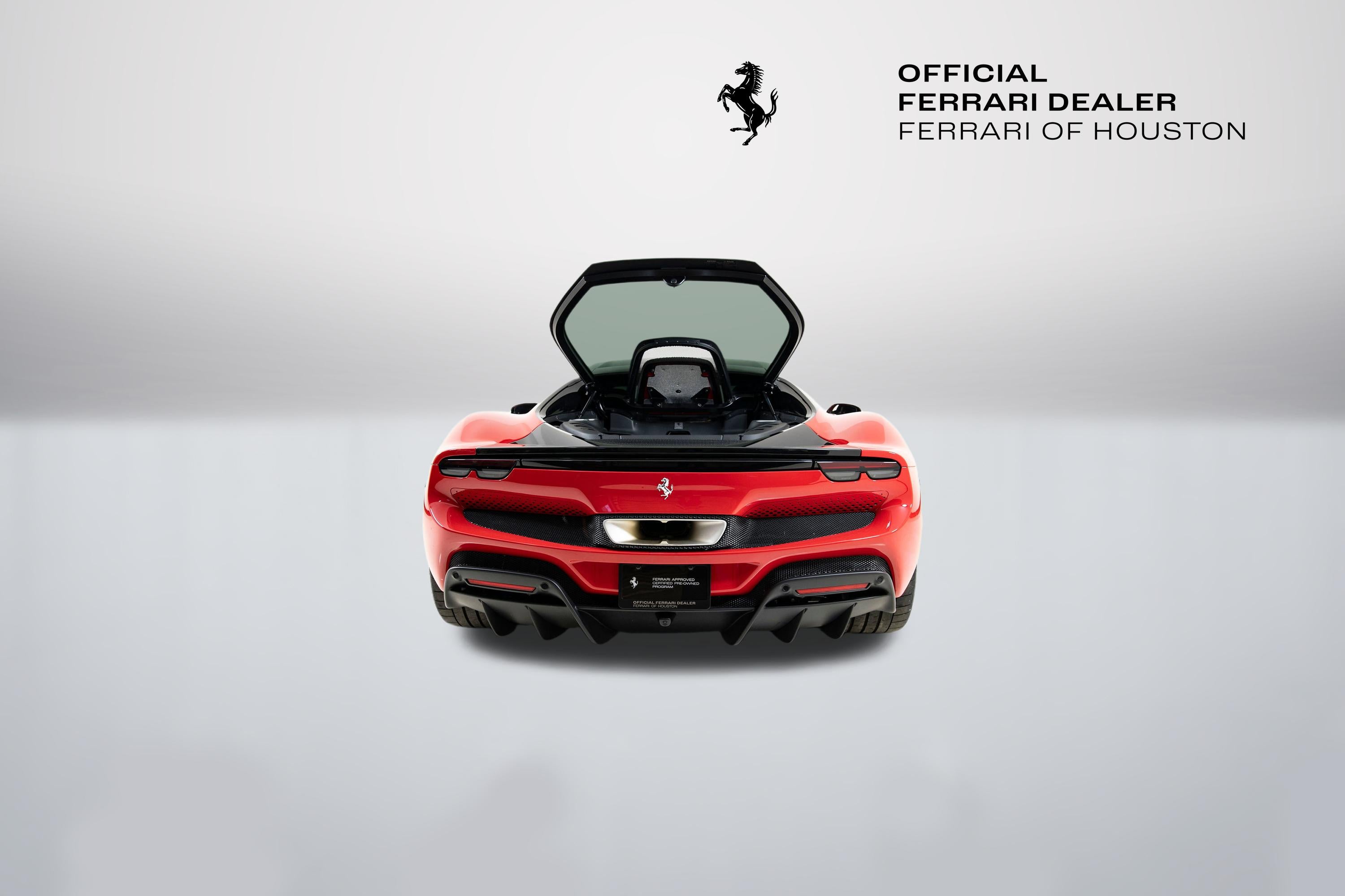 Ferrari of Houston is pleased to offer this stunning 2025 Ferrari 296 GTB. This is the exciting new V6 hybrid model that produces a staggering 819 bhp and defines "fun to drive." The 296 GTB offers breathtaking Ferrari styling that invokes classic Ferrari's of the past in a modern, compact package. Here is an opportunity to be the owner of a stunning 296 GTB with low mileage and a fantastic list of desirable factory options (see below). This 296 GTB was sold new by Ferrari of Houston, has covered only 362 miles. This 296 GTB has been through a comprehensive 101 Point Ferrari Approved inspection and comes with Ferrari warranty coverage until 9/9/2028, and no-cost annual maintenance until 9/9/2032. It is complete with all keys, books/manuals, car cover and battery charger. This Ferrari qualifies for special programs offered by Ferrari Financial Services, including extended financing terms and a popular 60 month balloon program. Please let us know if we can structure a custom quote to best fit your financial objectives. ACPLAPPLE CARPLAY AFSUAFS SYSTEM AMERICA BRADBACK RADAR CALYYELLOW BRAKE CALIPERS CRPTCarpets colorsNERO 152 (BLACK) CSB1COLOURED SAFETY BELTSCINTURE ROT (ROSSE) DAYTDAYTONA STYLE SEATS ELEVSUSPENSION LIFTER EMPHHORSE STITCHED ON HEADRESTROSSO (RED) 0504 EXTCExternal colorsROSSO CORSA DS 322 FCAMADVANCED FRONT DRIVING CAMERA HWCOHW READINESS MYFERRARI CONNECT INTCInternal colorsNERO 8500 (BLACK) LEDSCARB.FIB.STEERING WHEEL + LEDS LOGO'SCUDERIA FERRARI' SHIELDS MIR3ELECTROCHROMIC REARWIEW MIRROR PAR2FRONT AND REAR PARKING SENSORS PIP8COLOR ALCANTARA INT.