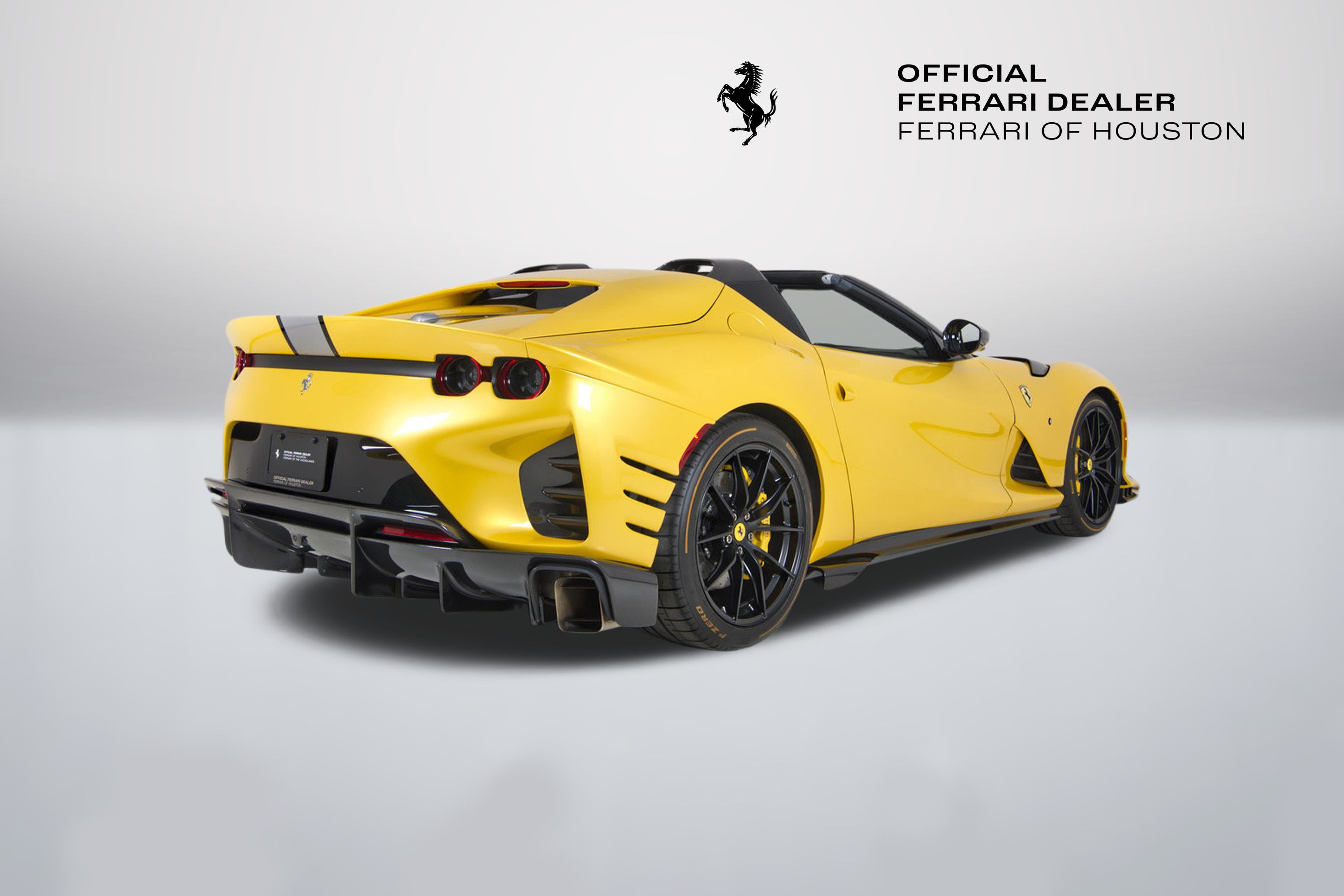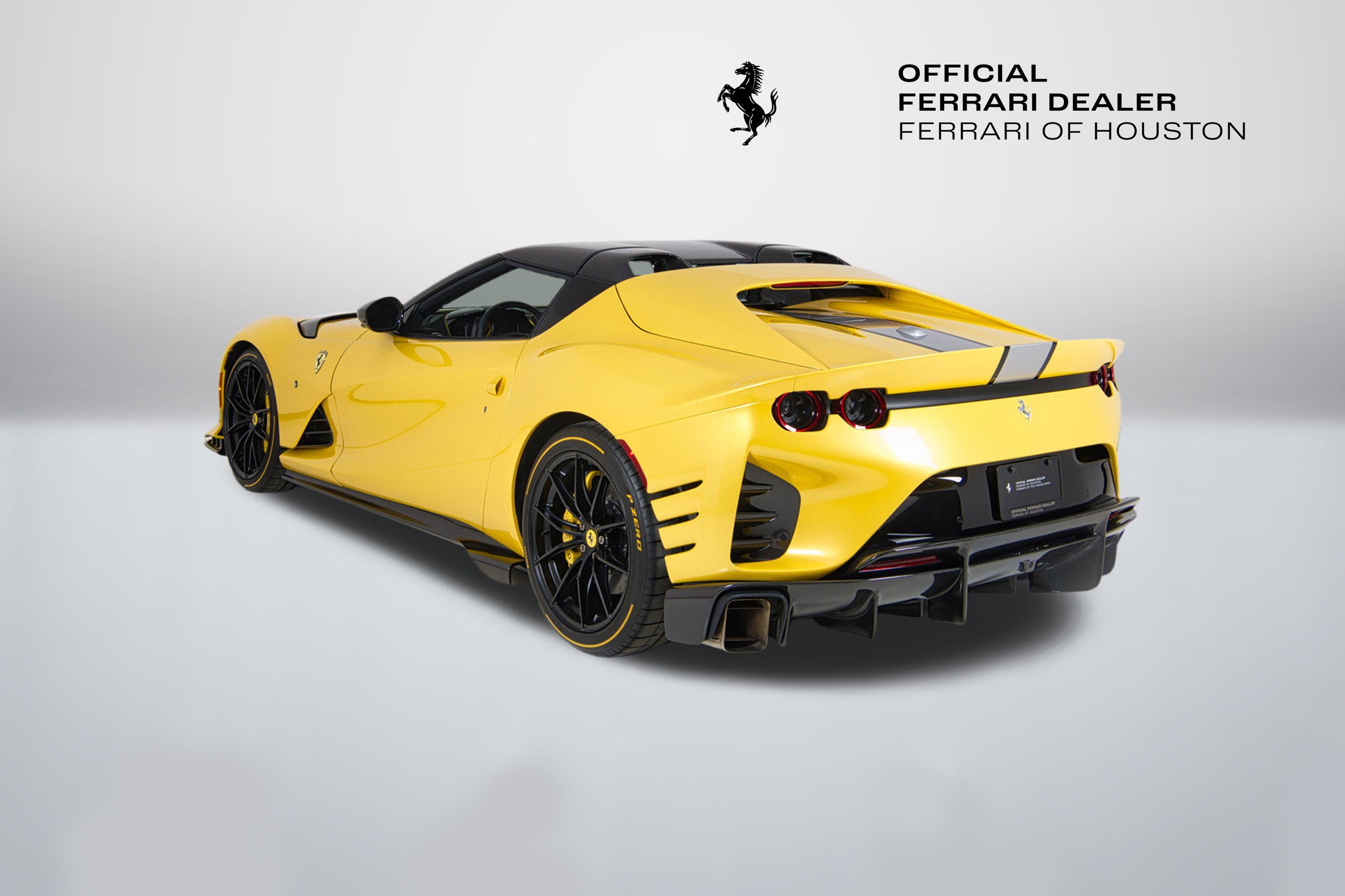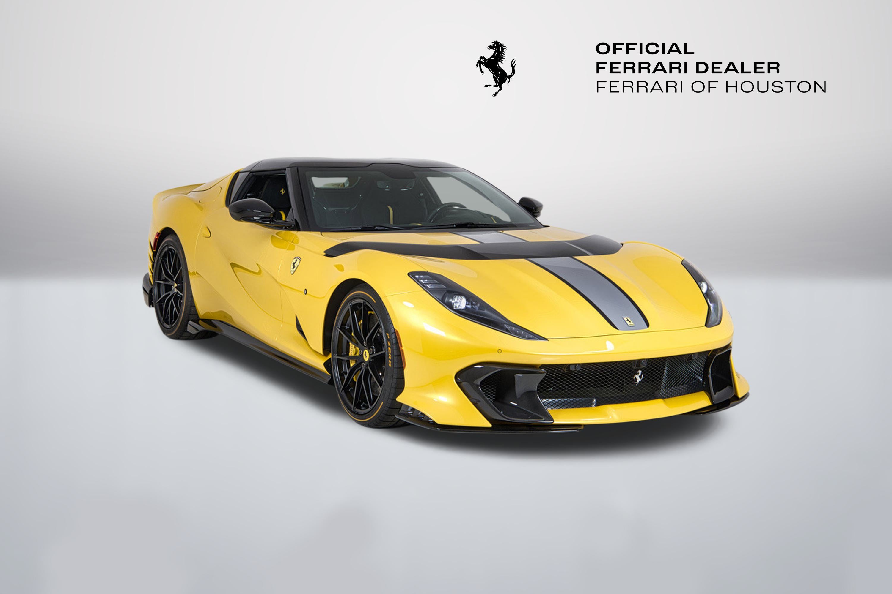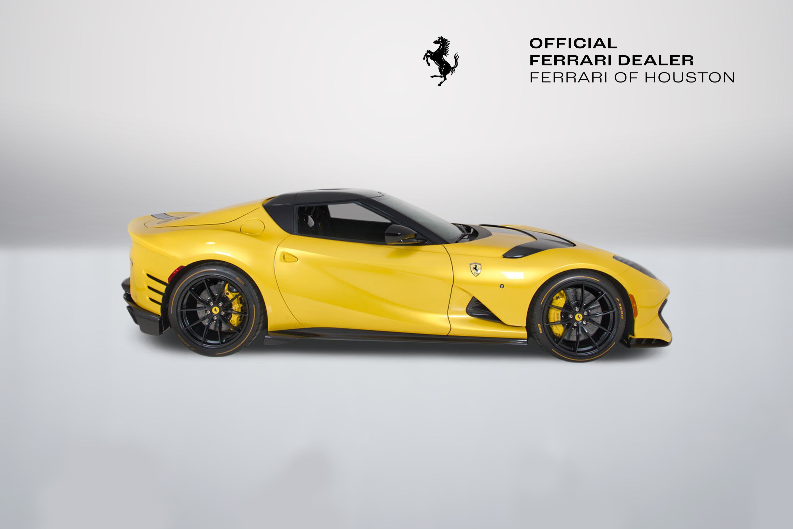 Ferrari of Houston is proud to present this 2024 Ferrari 812 Competizione Aperta, one of 599 produced. The 2024 Ferrari 812 Competizione Aperta is a limited-edition, open-top supercar that blends extreme performance with cutting-edge aerodynamics. Powered by a naturally aspirated 6.5L V12 producing 830 hp, it delivers exhilarating speed, razor-sharp handling, and a spine-tingling exhaust note. With its lightweight construction, aggressive styling, and advanced tech, the Aperta is a collector-focused masterpiece that represents the pinnacle of Ferraris front-engined GT lineage. Finished in Giallo Triplo Strato (triple layered paint) over Alcantera Nera interior, this Ferrari has an extensive list of desirable factory options (see below). This is a striking collector-grade example, in perfect condition. It has covered only 507 miles and is in as-new condition throughout, and complete with all keys, manuals, tools, cover and charger. It comes with Ferrari warranty coverage until 12/28/2027, and no-cost annual Ferrari maintenance until 12/28/2031. It has undergone a comprehensive Ferrari 101 Point Inspection is Ferrari Approved. It qualifies for several attractive financing programs offered by Ferrari Financial Services, including extended terms of up to 84 months, and a popular balloon program that offers attractive payments of leasing with the flexibility of ownership. Please contact us if we can structure a custom quote to best fit your financial objectives. ACPLAPPLE CARPLAY AFS2ADAPTIVE FRONT LIGHTS + SBL CALYYELLOW BRAKE CALIPERS CEHTVISIBLE CARBON FIBRE HARDTOP CEXDREAR DIFFUSER IN CARBON FIBRE CEXGFRONT AIRVENTS IN CARBON FIBRE CEXSCARBON FIBRE UNDERDOOR COVER CIDHCARBON FIBRE INNER DOOR HANDLE CIIPCARBON FIBRE INSTRUM. CLUSTER CITZCARBON FIBRE UPPER TUNNEL TRIM CLDTCOLOURED INNER DETAILSPELLE GIALLA 113266 CRPTCarpets colorsEXTRACAMPIONARIO-NOT STANDARD DATRCARBON FIBRE DASHBOARD INSERTS ELEVSUSPENSION LIFTER EMPHHORSE STITCHED ON HEADRESTFILO NUOVO GIALLO 0700 E EXTCExternal colorsEXTRACAMPIONARIO-NOT STANDARD FLMSSOVRATAPPETI STANDARD INTCInternal colorsALCANTARA NERA 9440 LIV9LIVREA NERODS1250+COLOR.SCELTAARGENTO NURBURGRING 101/C LOGO'SCUDERIA FERRARI' SHIELDS PAC3FRONT AND REAR PARKING CAMERAS PDISPASSENGER DISPLAY PNTESPECIAL COLORS 4 LAYERSGIALLO TRIPLO STRATO PPACPERSONALIZATION PACK RPMYYELLOW REV.