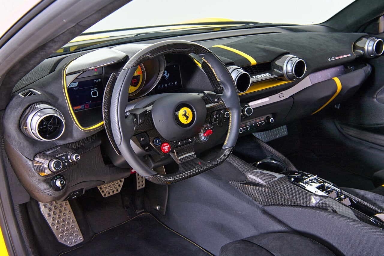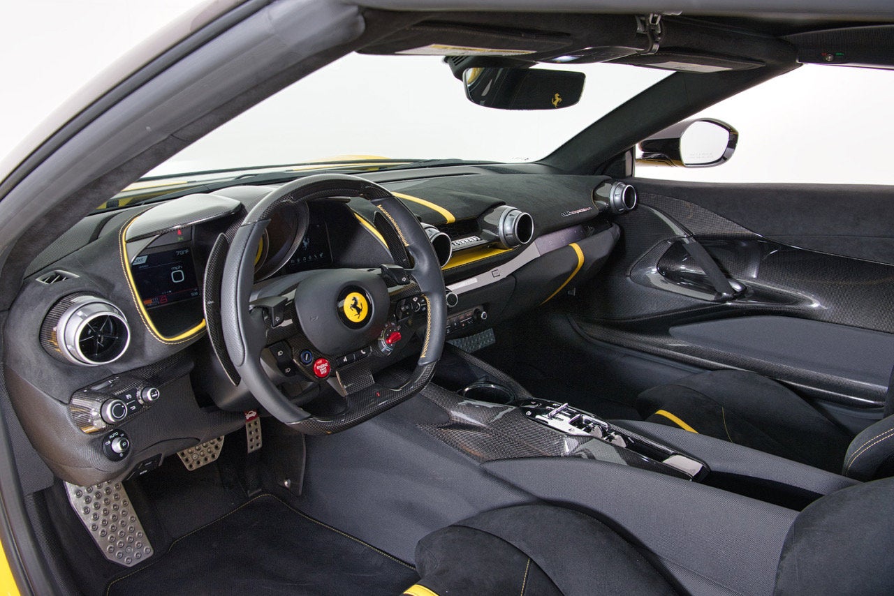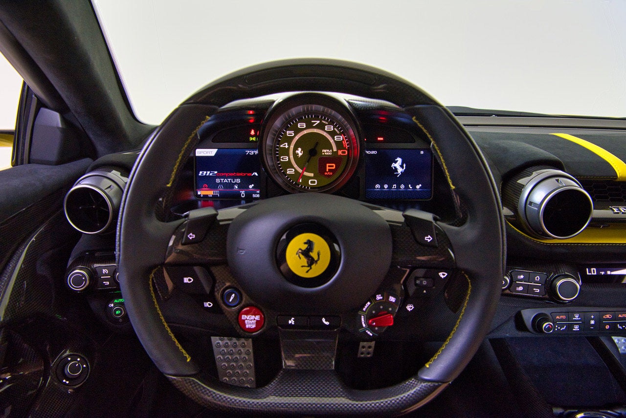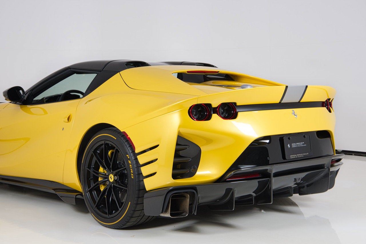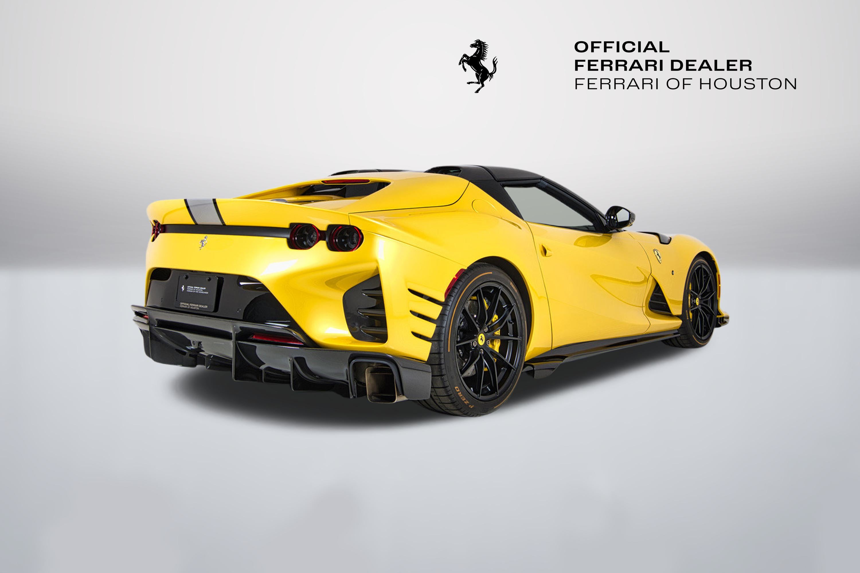 Ferrari of Houston is proud to present this 2024 Ferrari 812 Competizione Aperta, one of 599 produced. The 2024 Ferrari 812 Competizione Aperta is a limited-edition, open-top supercar that blends extreme performance with cutting-edge aerodynamics. Powered by a naturally aspirated 6.5L V12 producing 830 hp, it delivers exhilarating speed, razor-sharp handling, and a spine-tingling exhaust note. With its lightweight construction, aggressive styling, and advanced tech, the Aperta is a collector-focused masterpiece that represents the pinnacle of Ferraris front-engined GT lineage. Finished in Giallo Triplo Strato (triple layered paint) over Alcantera Nera interior, this Ferrari has an extensive list of desirable factory options (see below). This is a striking collector-grade example, in perfect condition. It has covered only 507 miles and is in as-new condition throughout, and complete with all keys, manuals, tools, cover and charger. It comes with Ferrari warranty coverage until 12/28/2027, and no-cost annual Ferrari maintenance until 12/28/2031. It has undergone a comprehensive Ferrari 101 Point Inspection is Ferrari Approved. It qualifies for several attractive financing programs offered by Ferrari Financial Services, including extended terms of up to 84 months, and a popular balloon program that offers attractive payments of leasing with the flexibility of ownership. Please contact us if we can structure a custom quote to best fit your financial objectives. ACPLAPPLE CARPLAY AFS2ADAPTIVE FRONT LIGHTS + SBL CALYYELLOW BRAKE CALIPERS CEHTVISIBLE CARBON FIBRE HARDTOP CEXDREAR DIFFUSER IN CARBON FIBRE CEXGFRONT AIRVENTS IN CARBON FIBRE CEXSCARBON FIBRE UNDERDOOR COVER CIDHCARBON FIBRE INNER DOOR HANDLE CIIPCARBON FIBRE INSTRUM. CLUSTER CITZCARBON FIBRE UPPER TUNNEL TRIM CLDTCOLOURED INNER DETAILSPELLE GIALLA 113266 CRPTCarpets colorsEXTRACAMPIONARIO-NOT STANDARD DATRCARBON FIBRE DASHBOARD INSERTS ELEVSUSPENSION LIFTER EMPHHORSE STITCHED ON HEADRESTFILO NUOVO GIALLO 0700 E EXTCExternal colorsEXTRACAMPIONARIO-NOT STANDARD FLMSSOVRATAPPETI STANDARD INTCInternal colorsALCANTARA NERA 9440 LIV9LIVREA NERODS1250+COLOR.SCELTAARGENTO NURBURGRING 101/C LOGO'SCUDERIA FERRARI' SHIELDS PAC3FRONT AND REAR PARKING CAMERAS PDISPASSENGER DISPLAY PNTESPECIAL COLORS 4 LAYERSGIALLO TRIPLO STRATO PPACPERSONALIZATION PACK RPMYYELLOW REV.