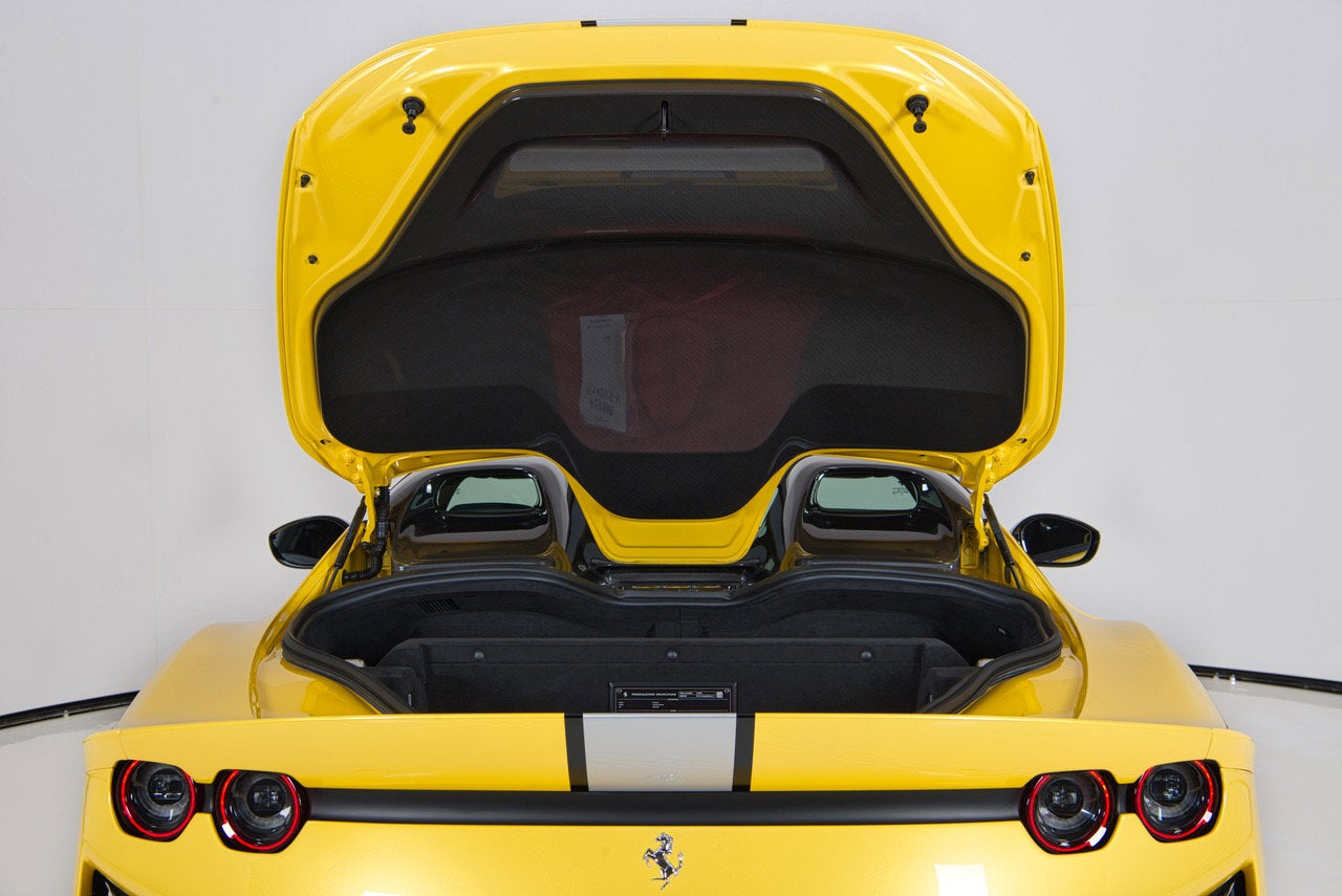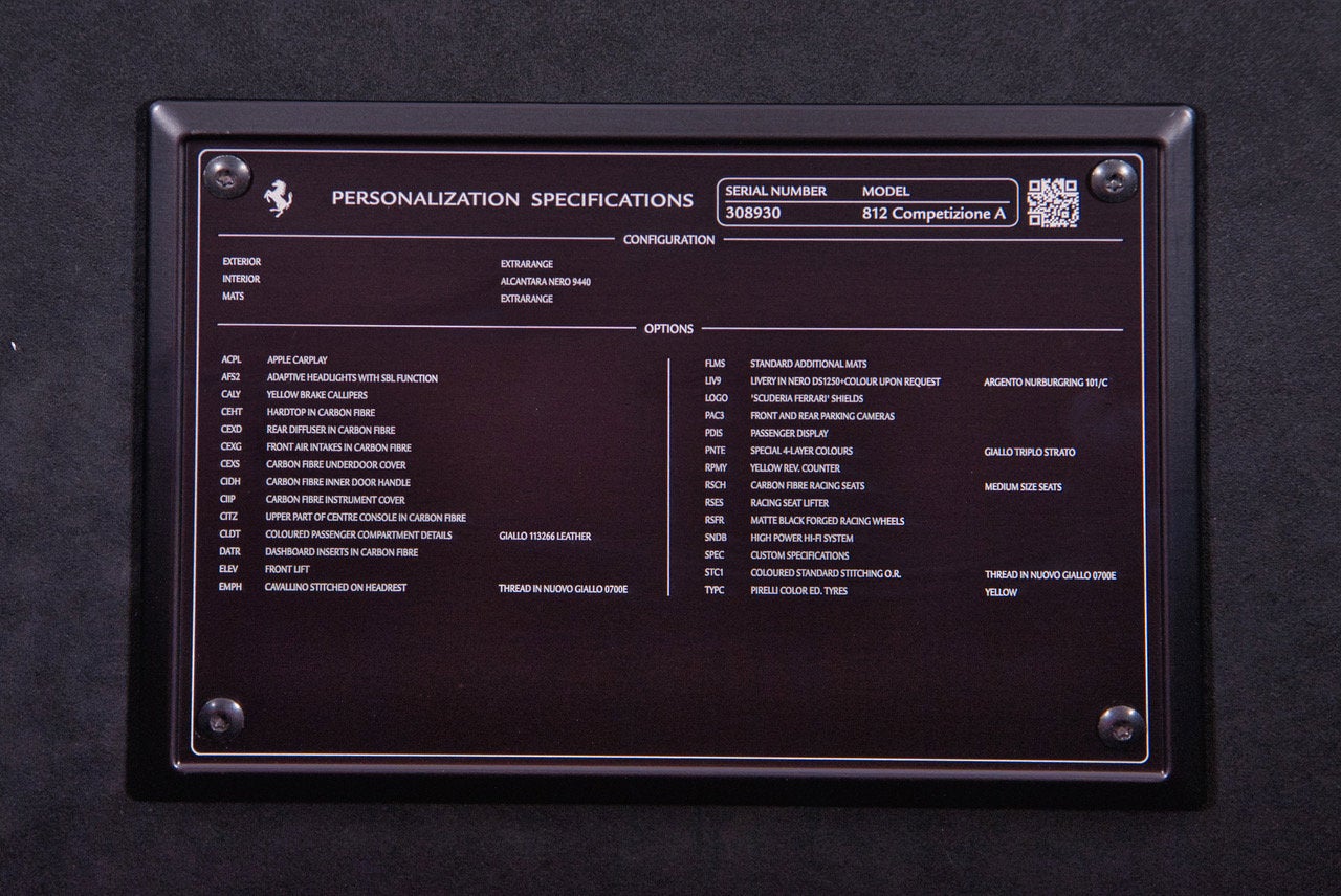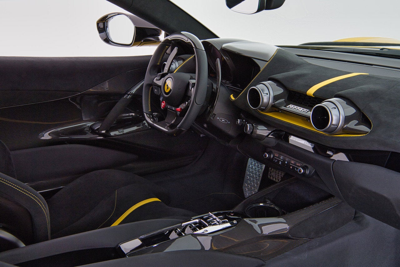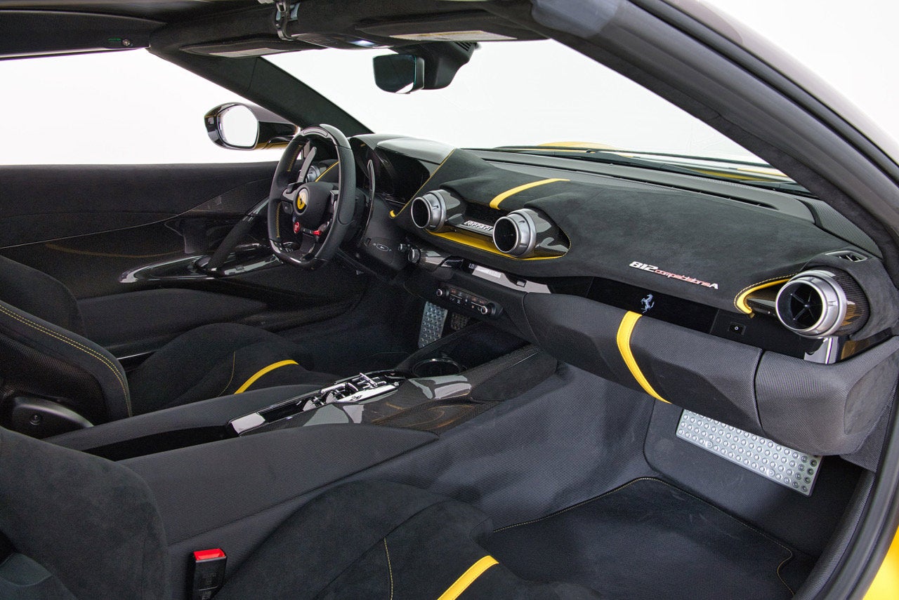 Ferrari of Houston is proud to present this 2024 Ferrari 812 Competizione Aperta, one of 599 produced. The 2024 Ferrari 812 Competizione Aperta is a limited-edition, open-top supercar that blends extreme performance with cutting-edge aerodynamics. Powered by a naturally aspirated 6.5L V12 producing 830 hp, it delivers exhilarating speed, razor-sharp handling, and a spine-tingling exhaust note. With its lightweight construction, aggressive styling, and advanced tech, the Aperta is a collector-focused masterpiece that represents the pinnacle of Ferraris front-engined GT lineage. Finished in Giallo Triplo Strato (triple layered paint) over Alcantera Nera interior, this Ferrari has an extensive list of desirable factory options (see below). This is a striking collector-grade example, in perfect condition. It has covered only 507 miles and is in as-new condition throughout, and complete with all keys, manuals, tools, cover and charger. It comes with Ferrari warranty coverage until 12/28/2027, and no-cost annual Ferrari maintenance until 12/28/2031. It has undergone a comprehensive Ferrari 101 Point Inspection is Ferrari Approved. It qualifies for several attractive financing programs offered by Ferrari Financial Services, including extended terms of up to 84 months, and a popular balloon program that offers attractive payments of leasing with the flexibility of ownership. Please contact us if we can structure a custom quote to best fit your financial objectives. ACPLAPPLE CARPLAY AFS2ADAPTIVE FRONT LIGHTS + SBL CALYYELLOW BRAKE CALIPERS CEHTVISIBLE CARBON FIBRE HARDTOP CEXDREAR DIFFUSER IN CARBON FIBRE CEXGFRONT AIRVENTS IN CARBON FIBRE CEXSCARBON FIBRE UNDERDOOR COVER CIDHCARBON FIBRE INNER DOOR HANDLE CIIPCARBON FIBRE INSTRUM. CLUSTER CITZCARBON FIBRE UPPER TUNNEL TRIM CLDTCOLOURED INNER DETAILSPELLE GIALLA 113266 CRPTCarpets colorsEXTRACAMPIONARIO-NOT STANDARD DATRCARBON FIBRE DASHBOARD INSERTS ELEVSUSPENSION LIFTER EMPHHORSE STITCHED ON HEADRESTFILO NUOVO GIALLO 0700 E EXTCExternal colorsEXTRACAMPIONARIO-NOT STANDARD FLMSSOVRATAPPETI STANDARD INTCInternal colorsALCANTARA NERA 9440 LIV9LIVREA NERODS1250+COLOR.SCELTAARGENTO NURBURGRING 101/C LOGO'SCUDERIA FERRARI' SHIELDS PAC3FRONT AND REAR PARKING CAMERAS PDISPASSENGER DISPLAY PNTESPECIAL COLORS 4 LAYERSGIALLO TRIPLO STRATO PPACPERSONALIZATION PACK RPMYYELLOW REV.