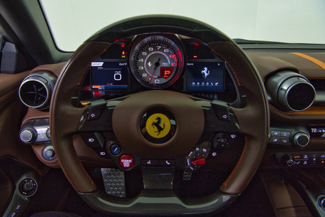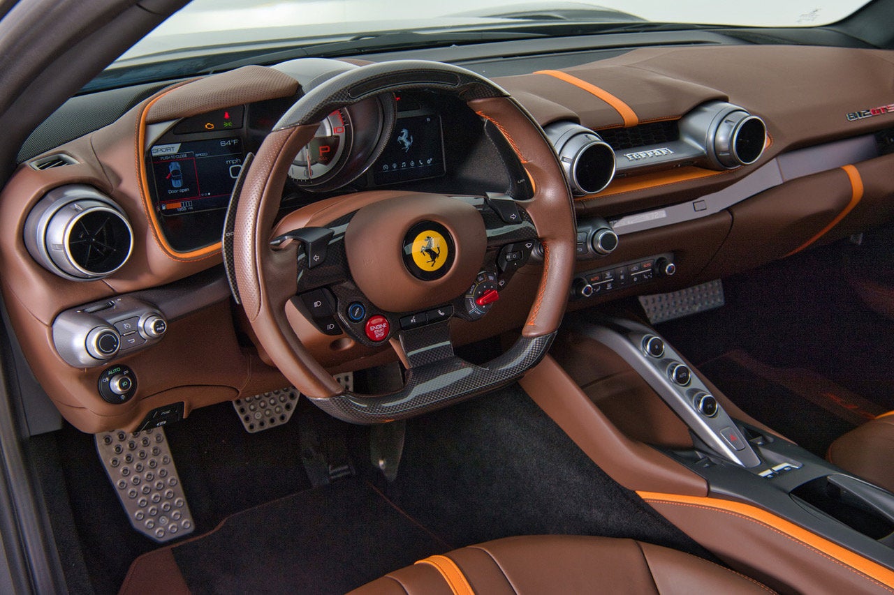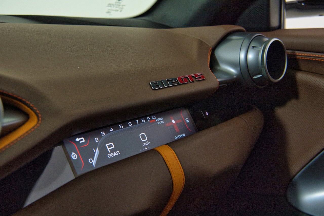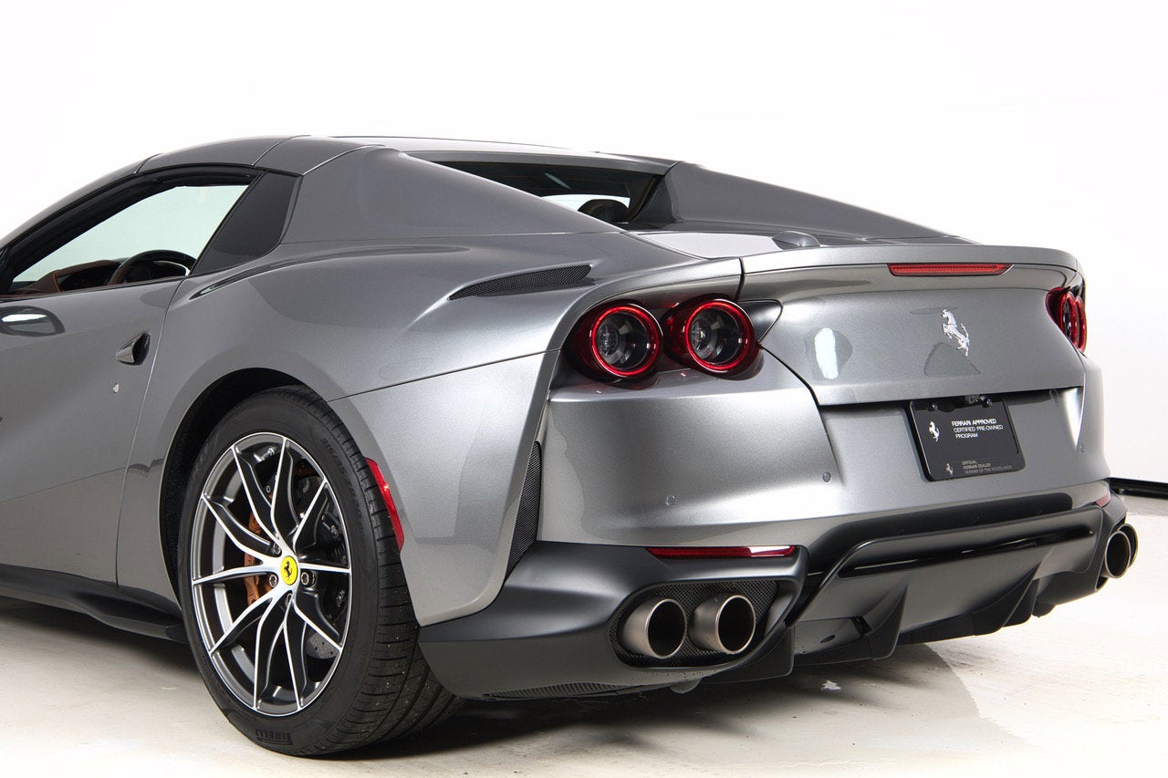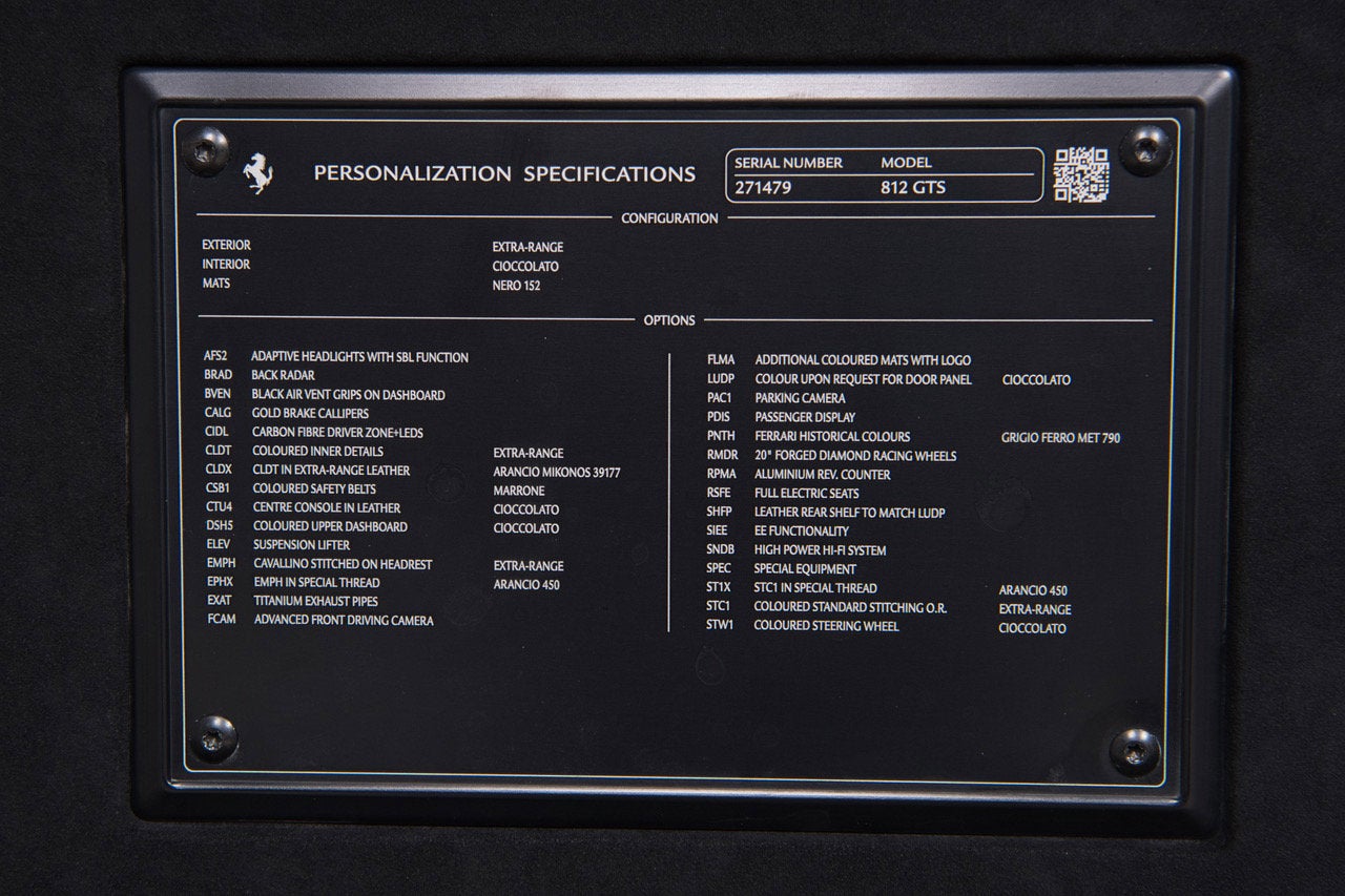 We are excited to offer this wonderful example of Ferrari's first production V12 convertible model since the 365 GTS was last built 50 years ago. There is simply no other driving experience that compares to the legendary 6.5L V12, producing 800bhp at peak revs of 8,900, in an open-top Ferrari. The 812 GTS model was sold-out immediately upon announcement and is one of the most coveted modern Ferrari sports cars; a true modern classic Ferrari! This is a striking, collector-grade example that has covered just 1,955 miles and is in as-new condition throughout. It is complete with all keys, manuals, tools, cover and charger. It comes with two years of Ferrari warranty, and no-cost annual Ferrari maintenance until 12/8/2028. It has undergone a comprehensive Ferrari 101 Point Inspection is Ferrari Approved. Finished in Gigio Ferro metallic paint over Cioccolato leather, this Ferrari has an extensive list of desirable factory options (see below). It qualifies for several attractive financing programs offered by Ferrari Financial Services, including extended terms of up to 84 months, and a popular balloon program that offers attractive payments of leasing with the flexibility of ownership. Please contact us if we can structure a custom quote to best fit your financial objectives. AFS2ADAPTIVE FRONT LIGHTS + SBL BRADBACK RADAR BVENBLACK RING ON DASHBOARD VENTS CALGGOLD BRAKE CALIPERS CIDLCARBON FIBRE DRIVER ZONE+LEDS CLDTCOLOURED INNER DETAILSEXTRACAMPIONARIO-NOT STANDARD CLDXCLDT WITH SPECIAL LEATHERARANCIO MIKONOS 39177 CRPTCarpets colorsNERO 152 (BLACK) CSB1COLOURED SAFETY BELTSCINTURE MARRONI CTU4LEATHER CENTRAL TUNNELCIOCCOLATO DSH5COLOURED UPPER DASHBOARDCIOCCOLATO ELEVSUSPENSION LIFTER EMPHHORSE STITCHED ON HEADRESTEXTRACAMPIONARIO-NOT STANDARD EPHXEMPH WITH SPECIAL THREADARANCIO 450 EXATTITANIUM EXHAUST PIPES EXTCExternal colorsEXTRACAMPIONARIO-NOT STANDARD FCAMADVANCED FRONT DRIVING CAMERA FLMACOLOURED MATS WITH LOGO INTCInternal colorsCIOCCOLATO LUDPLEATHER DOOR PANEL UPON REQUESCIOCCOLATO PAC1PARKING CAMERA PDISPASSENGER DISPLAY PNTHFERRARI HISTORICAL COLOURSGRIGIO FERRO MET 790 RMDRCERCHI 20" FORG. RACING DIAMAN RPMAALLUMINUM REV.