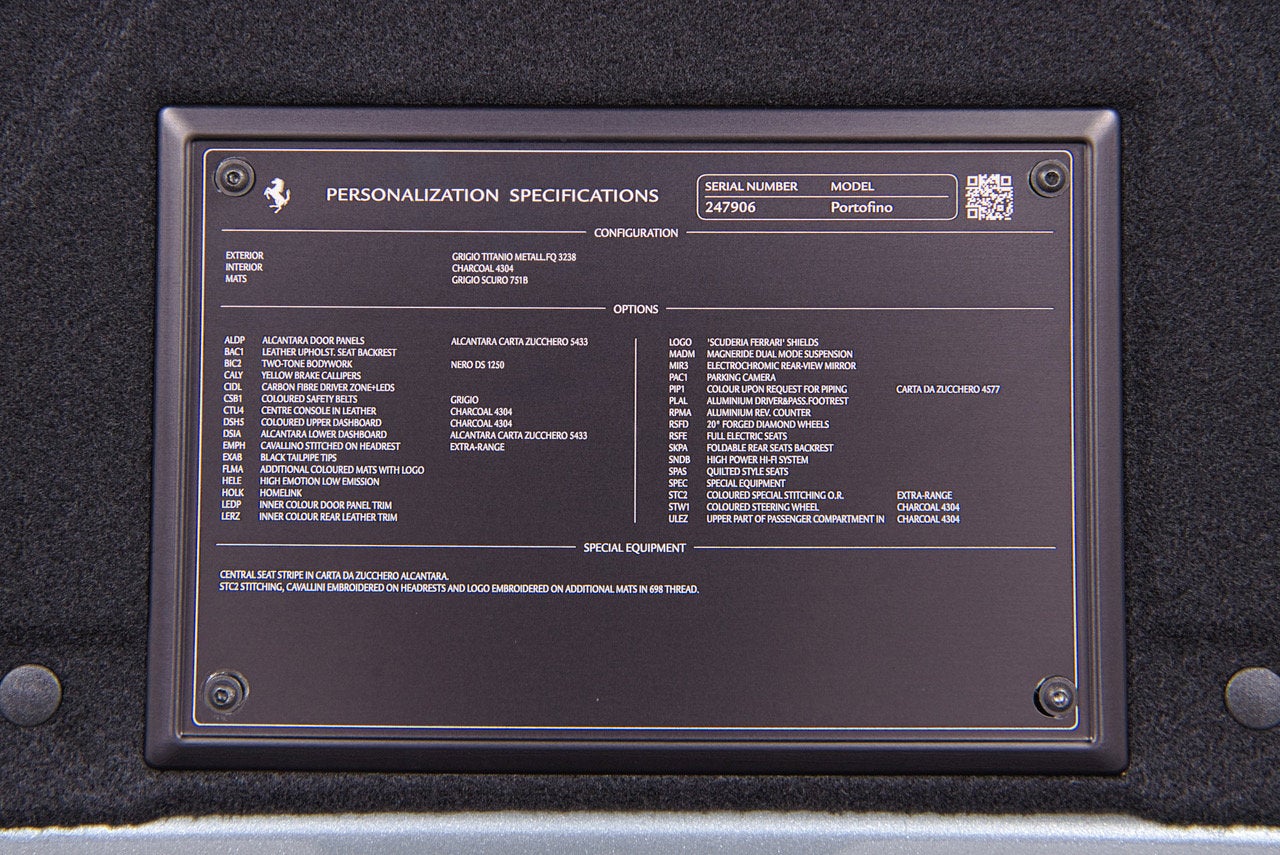 The Ferrari Portofino is one of our most popular Ferrari models, offering breathtaking Ferrari performance, stunning styling, and a distinctive Ferrari driving experience. It offers tremendous flexibility, from stylish coupe to convertible in 14 seconds, daily use, weekend touring, or even a weekend track day. This 2019 Portofino has covered just 5,566 miles. It was tastefully ordered in stunning Grigio Titanio Metallic paint over Charcoal leather. It has a tremendous list of desirable factory options, including Magneride Dual Mode Suspension. This Portofino is of course Ferrari Approved, and has completed a comprehensive 101 Point Ferrari inspection, and has had all service, updates, recalls, and service bulletins performed. It is complete with all keys, books/manuals, car cover and battery charger. This Portofino comes with Ferrari warranty until 3/21/2028 and no-cost annual maintenance until 7/27/26. We offer a number of attractive financing programs through Ferrari Financial Services, including extended financing terms of up to 84 months, leasing, and balloon loan options that offer the flexibility of ownership with the affordable monthly obligation of a lease. Contact us today and let Ferrari of Houston structure a program for you. LEATHER UPHOLST. SEAT BACKREST TWO TONE BODY PAINTING65453300NERO DS 1250 YELLOW BRAKE CALIPERS CARBON FIBRE DRIVER ZONE+LEDS Carpets colors364900751GRIGIO SCURO 751B COLOURED SAFETY BELTS364700805CINTURE GUN METAL GREY(GRIGIO) LEATHER CENTRAL TUNNEL364014304CHARCOAL 4304 (VERY DARK GREY) COLOURED UPPER DASHBOARD364014304CHARCOAL 4304 (VERY DARK GREY) ALCANTARA LOWER DASHBOARD364704577ALCANTARA CARTA ZUCCHERO 5433 HORSE STITCHED ON HEADREST364000000EXTRACAMPIONARIO-NOT STANDARD BLACK CERAMIC EXHAUST PIPES External colors65517700GRIGIO TITANIO METALL.FQ 3238 COLOURED MATS WITH LOGO HIGH EMOTION LOW EMISSION HOMELINK GARAGE DOOR OPENER Internal colors364014304CHARCOAL 4304 (VERY DARK GREY) INNER COLOUR DOOR PANNEL TRIM INNER COLOUR REAR LEATHER TRIM 'SCUDERIA FERRARI' SHIELDS MAGNERIDE DUAL MODE SUSPENSION ELECTROCHROMIC REARWIEW MIRROR INTERNAL USE PARKING CAMERA COLOUR UPON REQUEST FOR PIPING364014577CARTA DA ZUCCHERO 4577 ALUMINIUM DRIVER&PASS.FOOTREST ALLUMINUM REV.