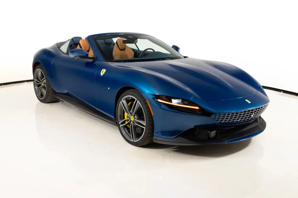 The Ferrari Roma Spider is a stunning and luxurious grand tourer that boasts a sleek and timeless design! We are proud to present this one-owner 2025 Roma Spider that has covered only 1,157 miles. It was tastefully ordered in stunning Blu Abu Dhabi paint over Cuoio leather. It has a tremendous list of desirable factory options listed below. This Roma Spider is of course Ferrari Approved, and has completed a comprehensive 101 Point Ferrari inspection, and has had all service, updates, recalls, and service bulletins performed. It is complete with all keys, books/manuals, car cover and battery charger. This Roma Spider comes with Ferrari warranty until 3/19/2029, and no-cost annual maintenance until 3/19/2032. We offer a number of attractive financing programs through Ferrari Financial Services, including extended financing terms of up to 84 months, leasing, and balloon loan options that offer the flexibility of ownership with the affordable monthly obligation of a lease. ACC1FRONT RADAR WITH ACC ADASADAS FULL PACKAGE BAC3COLOR LEATHER SEATS BACKRESTCUOIO 4609 BRADBACK RADAR CALYYELLOW BRAKE CALIPERS COACMYFERRARI CONNECT ACTIVATED CRPTCarpets colorsNERO 3936 CSB1COLOURED SAFETY BELTSCINTURE BLU STERLING DUALDUAL COLOUR LEATHER INT. TRIMBLU MEDIO 112807 EXTCExternal colorsEXTRACAMPIONARIO-NOT STANDARD FCAMADVANCED FRONT DRIVING CAMERA HOLKHOMELINK GARAGE DOOR OPENER HWCOHW READINESS MYFERRARI CONNECT INTCInternal colorsCUOIO 4609 LEDSCARB.FIB.STEERING WHEEL + LEDS LOGO'SCUDERIA FERRARI' SHIELDS MADMMAGNERIDE DUAL MODE SUSPENSION MIR3ELECTROCHROMIC REARWIEW MIRROR PDISPASSENGER DISPLAY PIP8COLOR ALCANTARA INT.