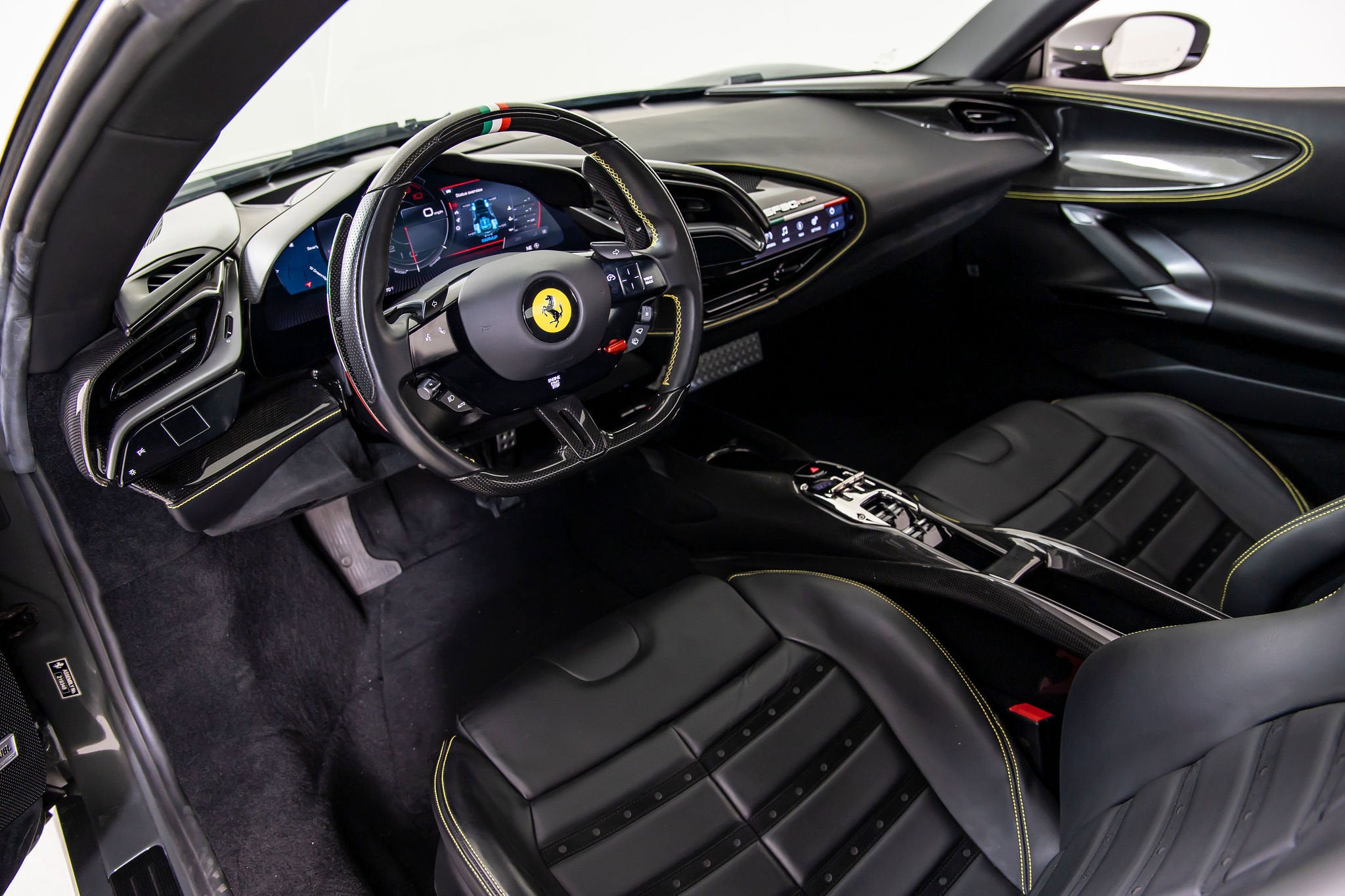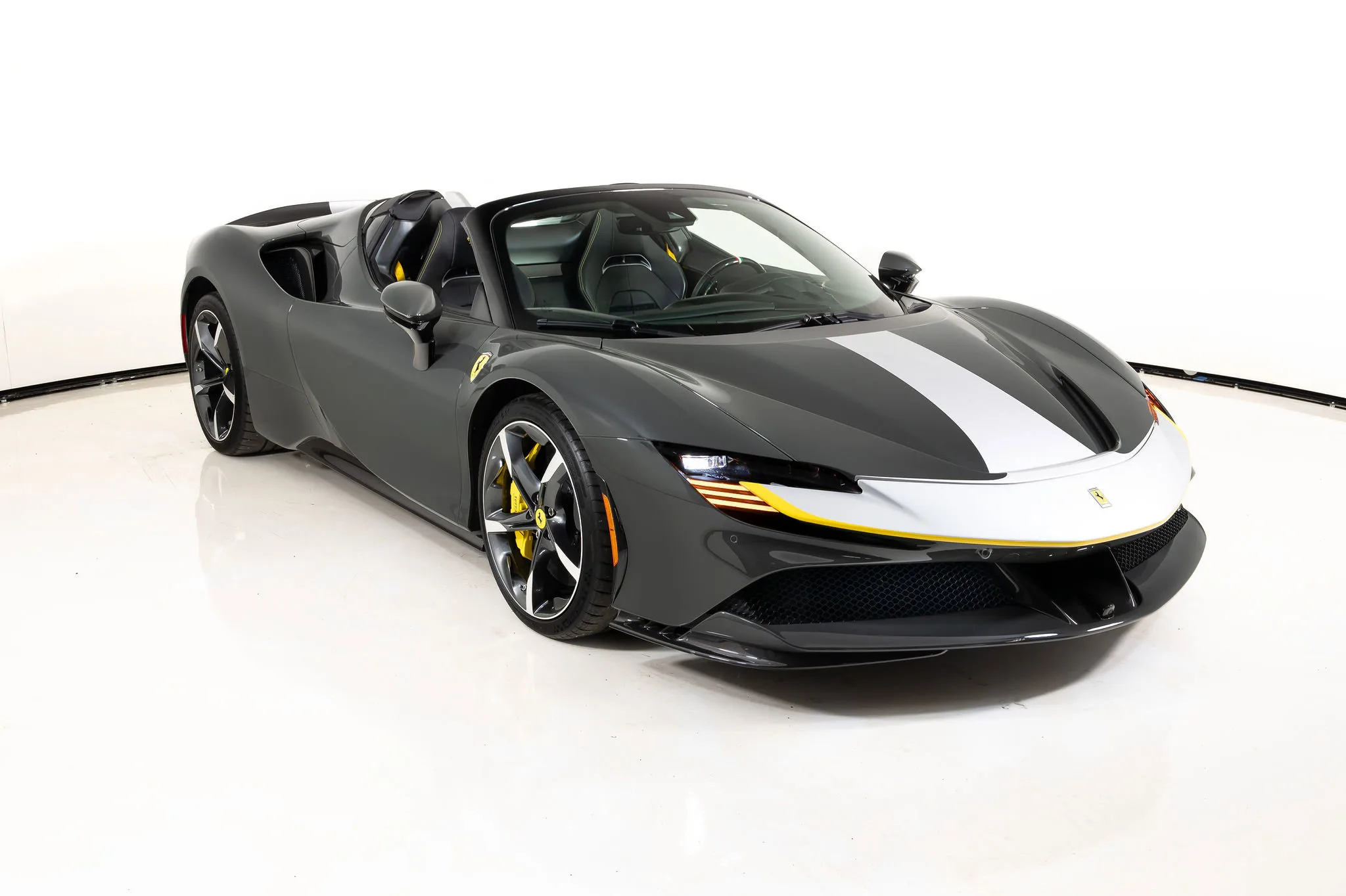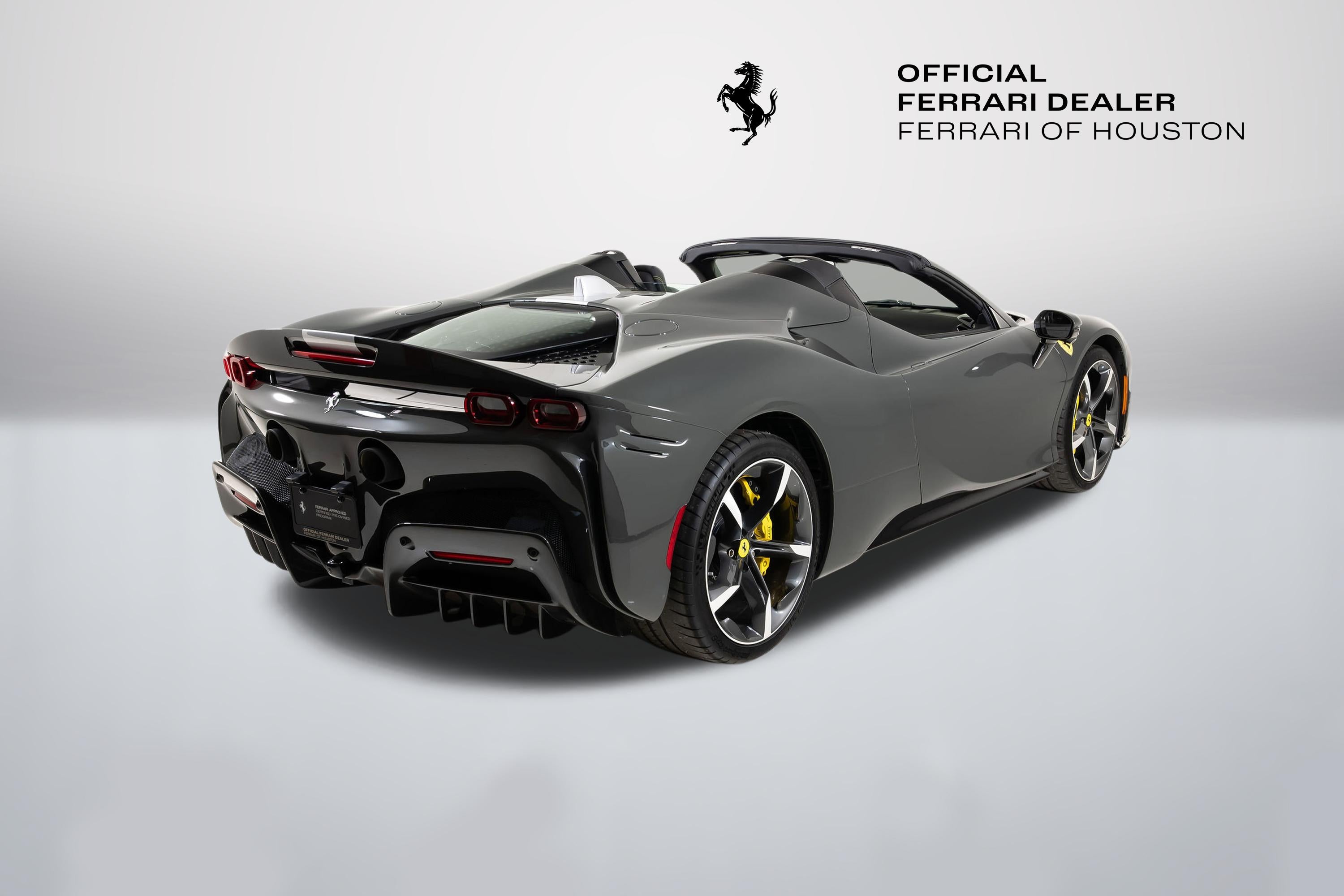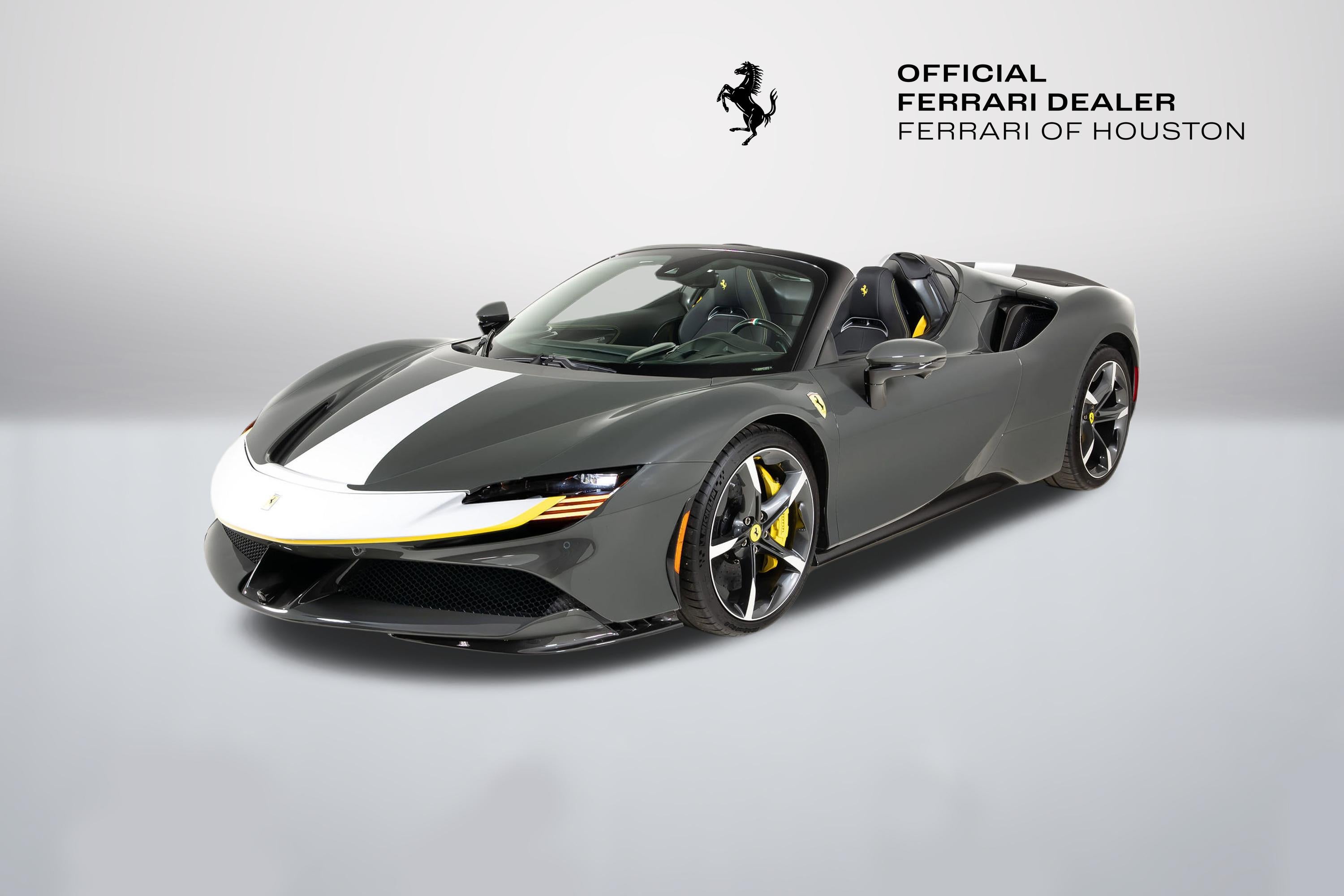 We are thrilled to offer you this one-owner 2023 Ferrari Approved SF90 Spider, the most technologically advanced production convertible ever offered by Maranello, with a sophisticated hybrid drivetrain drawing on decades of Formula 1 experience. This is an opportunity to acquire an amazing and unique example that is in virtually new condition throughout. This SF90 Spider is equipped with a long list of desirable options (see below) and an original MSRP of $827,986. This SF90 Spider comes with Ferrari warranty until 1/30/2030 and no-cost annual maintenance until 1/30/2031. It has completed a comprehensive 101 Point Ferrari Approved inspection, has had all recalls/technical updates performed, and is complete with all keys, books, tools, car cover, and battery charger. We offer a number of attractive financing programs through Ferrari Financial Services, including extended financing terms, and a popular 60 month balloon program. Please contact us if we can structure a financing quote to best meet your financial objectives. ACPLAPPLE CARPLAY AFSUAFS SYSTEM AMERICA BIC2TWO TONE BODY PAINTINGNERO DS 1250 BRADBACK RADAR CALYYELLOW BRAKE CALIPERS CEISCARBON FIBRE SIDE AIR SPLITTER CEL2ENGINE COVERS IN CARBON FIBRE CERBCARBON FIBRE REAR BOOT TRIM CEXDREAR DIFFUSER IN CARBON FIBRE CEXSCARBON FIBRE UNDERDOOR COVER CFKYCAR KEY IN CARBON FIBRE CIADCARBON FIBRE AIR DIFFUSER CIDLCARBON FIBRE DRIVER ZONE+LEDS CIIPCARBON FIBRE INSTRUM. CLUSTER CITZCARBON FIBRE UPPER TUNNEL TRIM CIZBZONA BAULE IN CARBONIO CRPTCarpets colorsNERO 152 (BLACK) CSB1COLOURED SAFETY BELTSCINTURE GIALLO DATRCARBON FIBRE DASHBOARD INSERTS DAYTDAYTONA STYLE SEATS DLPTTRICOLORE DREAMLINE F1 PADDLES EMPHHORSE STITCHED ON HEADRESTFILO GIALLO 0113 - YELLOW 0113 EXABBLACK CERAMIC EXHAUST PIPES EXTCExternal colorsEXTRACAMPIONARIO-NOT STANDARD FCAMADVANCED FRONT DRIVING CAMERA FCWSCARBON FIBRE FRONT SPOILER FIO1ASSETTO FIORANO FIO2ASSETTO FIORANO EXTENDED HOLKHOMELINK GARAGE DOOR OPENER HWCOHW READINESS MYFERRARI CONNECT IFPDITA FLAG PAINTED ON DASHBOARD INTCInternal colorsNERO 8500 (BLACK) LITUTRICOLORE LIV.