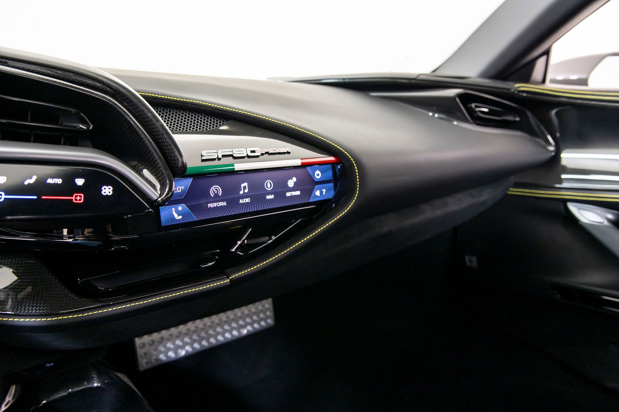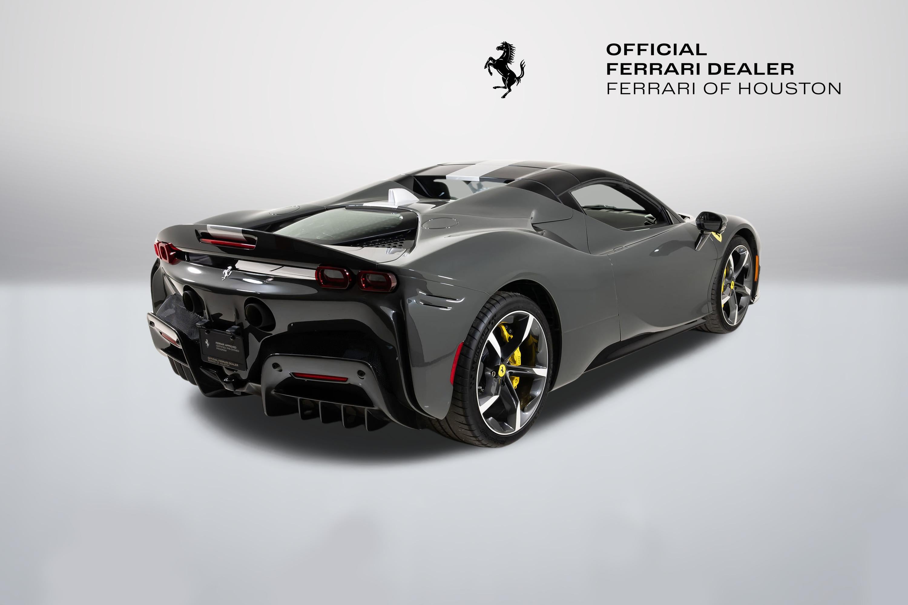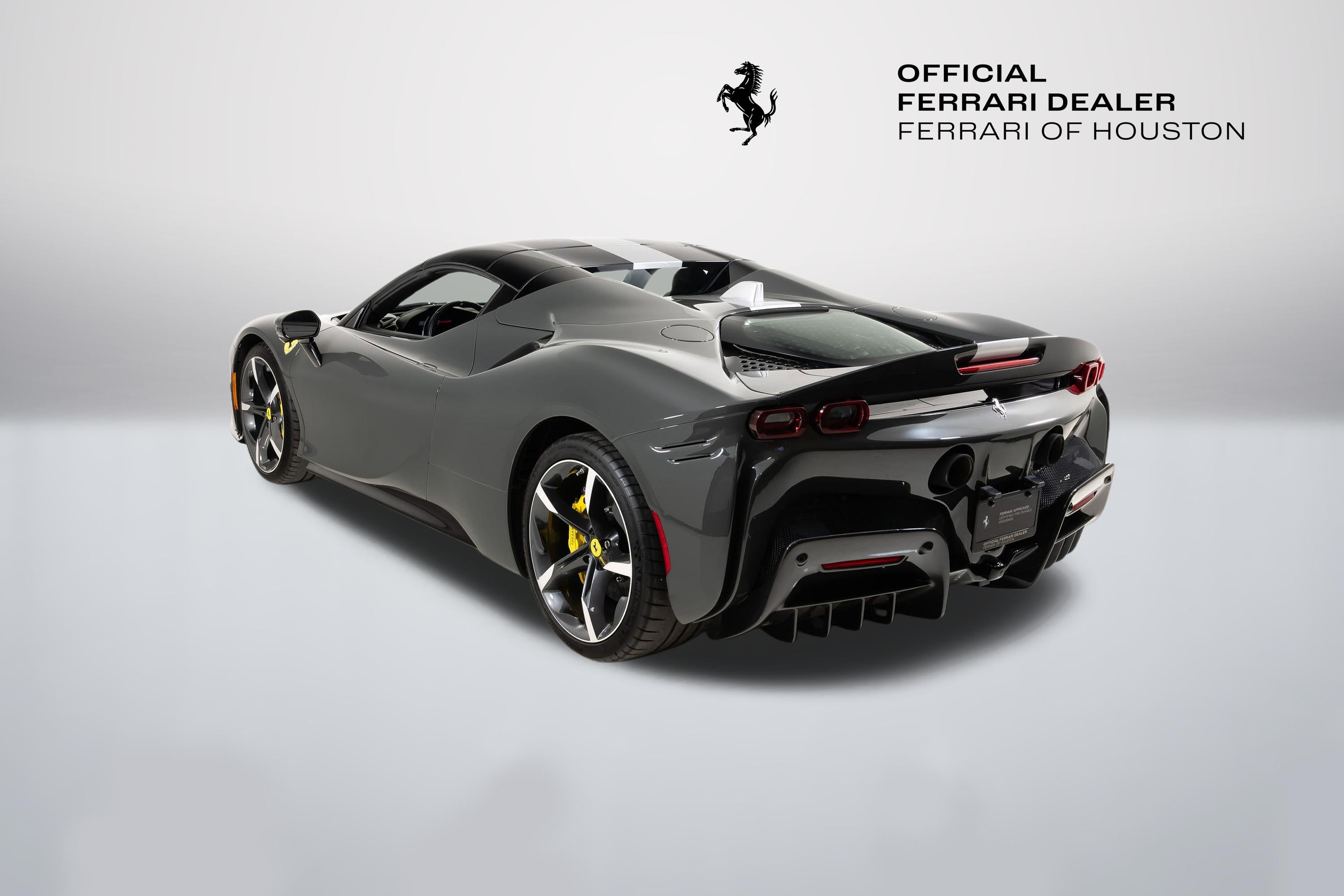 We are thrilled to offer you this one-owner 2023 Ferrari Approved SF90 Spider, the most technologically advanced production convertible ever offered by Maranello, with a sophisticated hybrid drivetrain drawing on decades of Formula 1 experience. This is an opportunity to acquire an amazing and unique example that is in virtually new condition throughout. This SF90 Spider is equipped with a long list of desirable options (see below) and an original MSRP of $827,986. This SF90 Spider comes with Ferrari warranty until 1/30/2030 and no-cost annual maintenance until 1/30/2031. It has completed a comprehensive 101 Point Ferrari Approved inspection, has had all recalls/technical updates performed, and is complete with all keys, books, tools, car cover, and battery charger. We offer a number of attractive financing programs through Ferrari Financial Services, including extended financing terms, and a popular 60 month balloon program. Please contact us if we can structure a financing quote to best meet your financial objectives. ACPLAPPLE CARPLAY AFSUAFS SYSTEM AMERICA BIC2TWO TONE BODY PAINTINGNERO DS 1250 BRADBACK RADAR CALYYELLOW BRAKE CALIPERS CEISCARBON FIBRE SIDE AIR SPLITTER CEL2ENGINE COVERS IN CARBON FIBRE CERBCARBON FIBRE REAR BOOT TRIM CEXDREAR DIFFUSER IN CARBON FIBRE CEXSCARBON FIBRE UNDERDOOR COVER CFKYCAR KEY IN CARBON FIBRE CIADCARBON FIBRE AIR DIFFUSER CIDLCARBON FIBRE DRIVER ZONE+LEDS CIIPCARBON FIBRE INSTRUM. CLUSTER CITZCARBON FIBRE UPPER TUNNEL TRIM CIZBZONA BAULE IN CARBONIO CRPTCarpets colorsNERO 152 (BLACK) CSB1COLOURED SAFETY BELTSCINTURE GIALLO DATRCARBON FIBRE DASHBOARD INSERTS DAYTDAYTONA STYLE SEATS DLPTTRICOLORE DREAMLINE F1 PADDLES EMPHHORSE STITCHED ON HEADRESTFILO GIALLO 0113 - YELLOW 0113 EXABBLACK CERAMIC EXHAUST PIPES EXTCExternal colorsEXTRACAMPIONARIO-NOT STANDARD FCAMADVANCED FRONT DRIVING CAMERA FCWSCARBON FIBRE FRONT SPOILER FIO1ASSETTO FIORANO FIO2ASSETTO FIORANO EXTENDED HOLKHOMELINK GARAGE DOOR OPENER HWCOHW READINESS MYFERRARI CONNECT IFPDITA FLAG PAINTED ON DASHBOARD INTCInternal colorsNERO 8500 (BLACK) LITUTRICOLORE LIV.