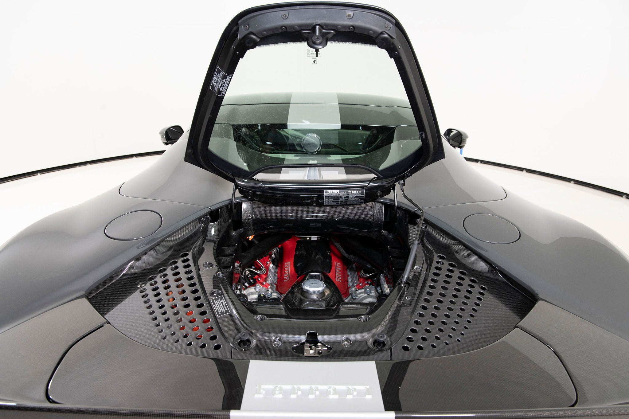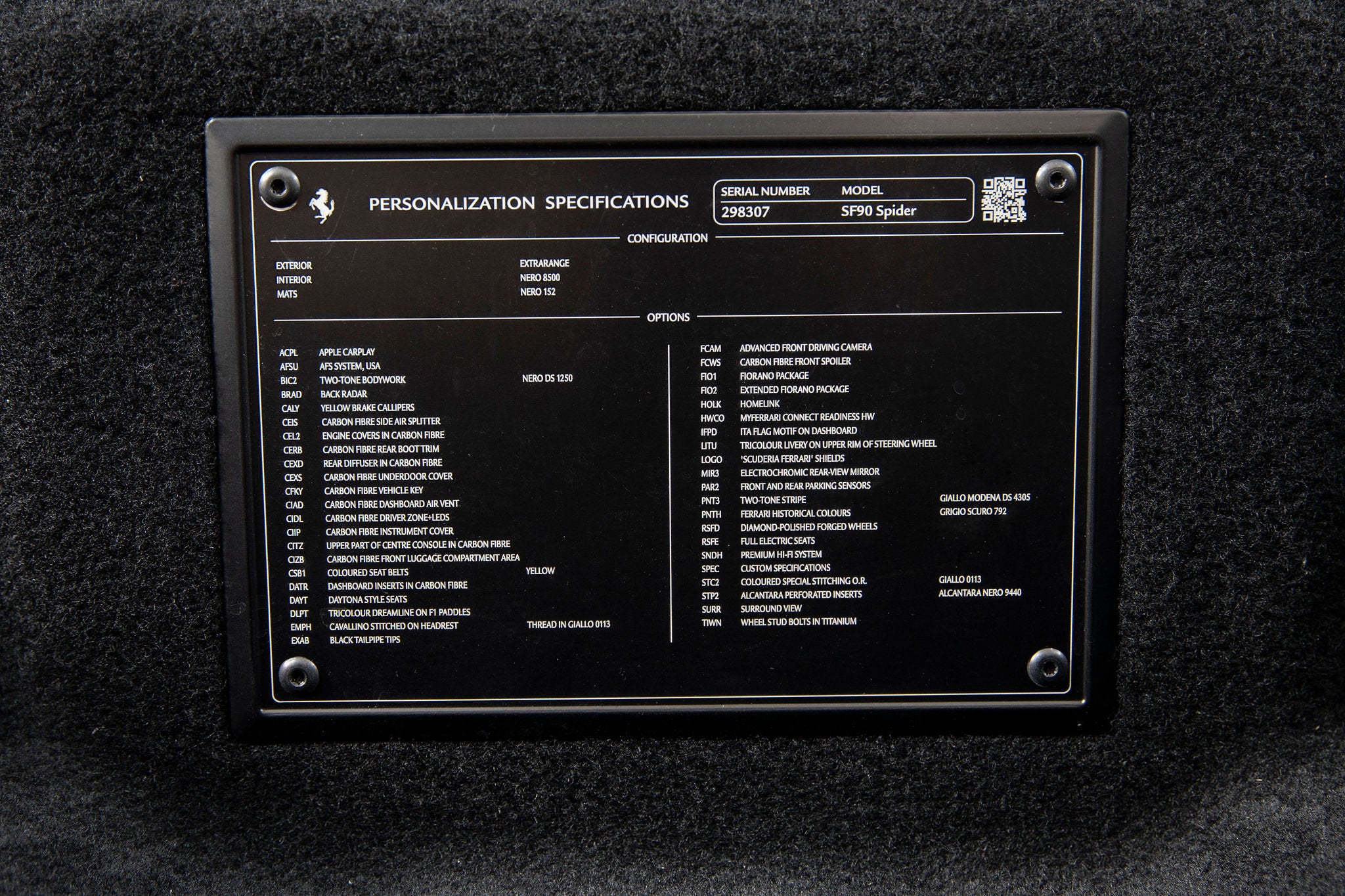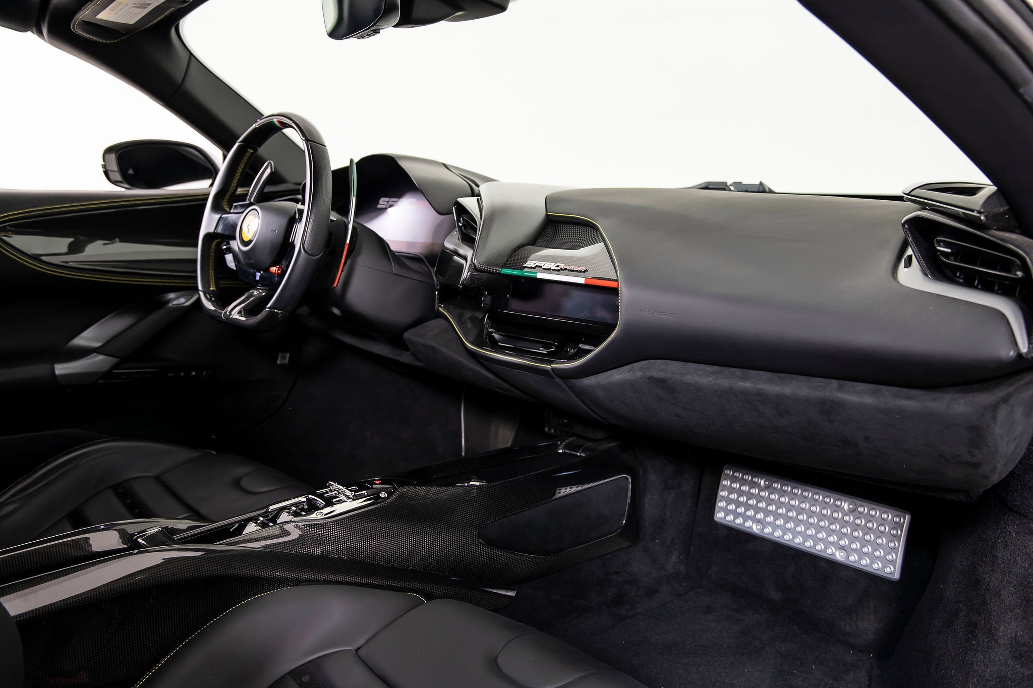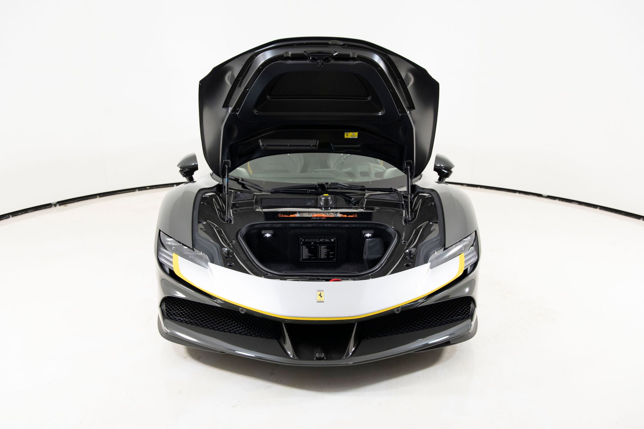 We are thrilled to offer you this one-owner 2023 Ferrari Approved SF90 Spider, the most technologically advanced production convertible ever offered by Maranello, with a sophisticated hybrid drivetrain drawing on decades of Formula 1 experience. This is an opportunity to acquire an amazing and unique example that is in virtually new condition throughout. This SF90 Spider is equipped with a long list of desirable options (see below) and an original MSRP of $827,986. This SF90 Spider comes with Ferrari warranty until 1/30/2030 and no-cost annual maintenance until 1/30/2031. It has completed a comprehensive 101 Point Ferrari Approved inspection, has had all recalls/technical updates performed, and is complete with all keys, books, tools, car cover, and battery charger. We offer a number of attractive financing programs through Ferrari Financial Services, including extended financing terms, and a popular 60 month balloon program. Please contact us if we can structure a financing quote to best meet your financial objectives. ACPLAPPLE CARPLAY AFSUAFS SYSTEM AMERICA BIC2TWO TONE BODY PAINTINGNERO DS 1250 BRADBACK RADAR CALYYELLOW BRAKE CALIPERS CEISCARBON FIBRE SIDE AIR SPLITTER CEL2ENGINE COVERS IN CARBON FIBRE CERBCARBON FIBRE REAR BOOT TRIM CEXDREAR DIFFUSER IN CARBON FIBRE CEXSCARBON FIBRE UNDERDOOR COVER CFKYCAR KEY IN CARBON FIBRE CIADCARBON FIBRE AIR DIFFUSER CIDLCARBON FIBRE DRIVER ZONE+LEDS CIIPCARBON FIBRE INSTRUM. CLUSTER CITZCARBON FIBRE UPPER TUNNEL TRIM CIZBZONA BAULE IN CARBONIO CRPTCarpets colorsNERO 152 (BLACK) CSB1COLOURED SAFETY BELTSCINTURE GIALLO DATRCARBON FIBRE DASHBOARD INSERTS DAYTDAYTONA STYLE SEATS DLPTTRICOLORE DREAMLINE F1 PADDLES EMPHHORSE STITCHED ON HEADRESTFILO GIALLO 0113 - YELLOW 0113 EXABBLACK CERAMIC EXHAUST PIPES EXTCExternal colorsEXTRACAMPIONARIO-NOT STANDARD FCAMADVANCED FRONT DRIVING CAMERA FCWSCARBON FIBRE FRONT SPOILER FIO1ASSETTO FIORANO FIO2ASSETTO FIORANO EXTENDED HOLKHOMELINK GARAGE DOOR OPENER HWCOHW READINESS MYFERRARI CONNECT IFPDITA FLAG PAINTED ON DASHBOARD INTCInternal colorsNERO 8500 (BLACK) LITUTRICOLORE LIV.
