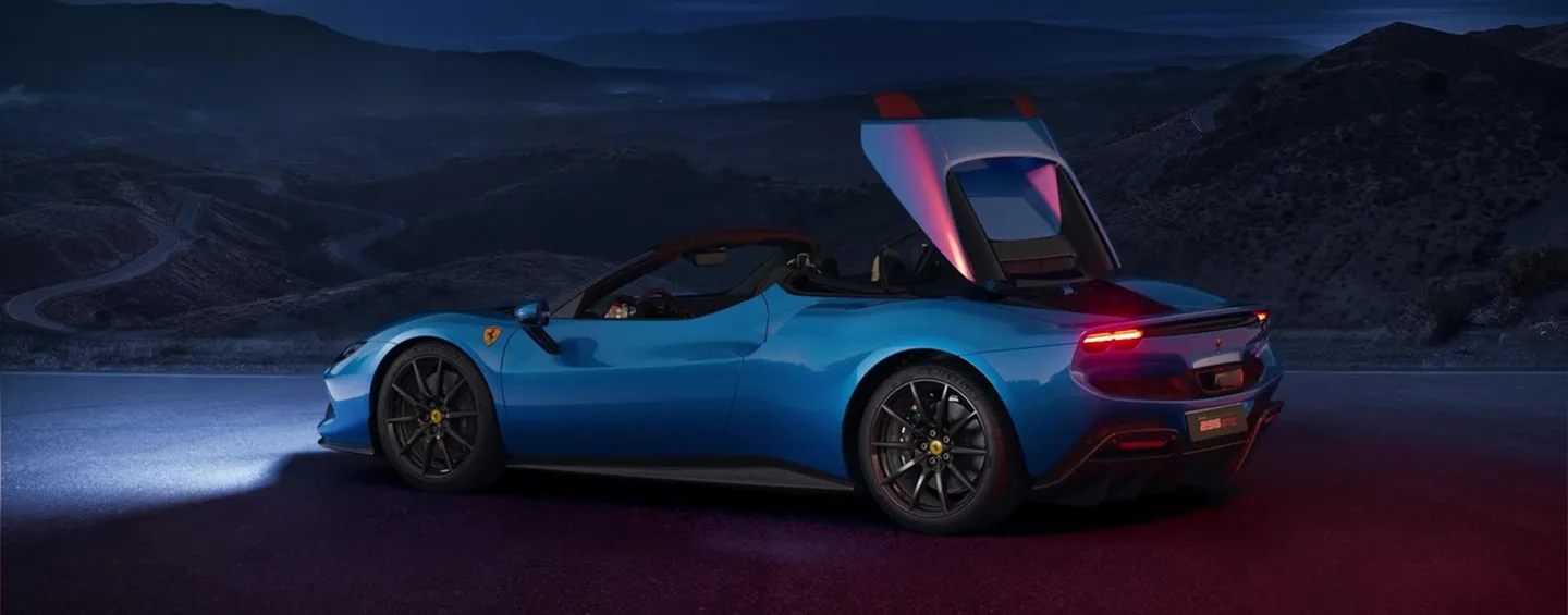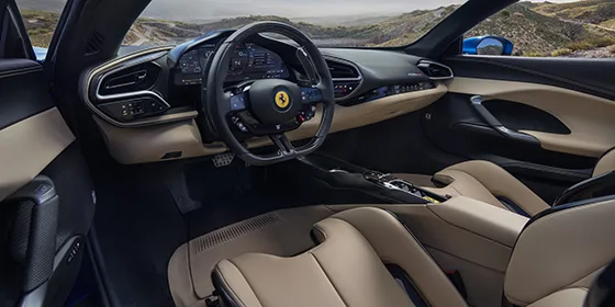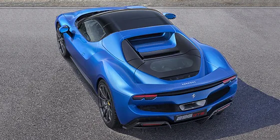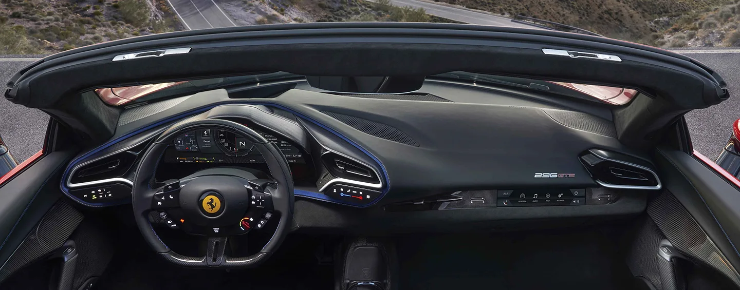 Italian design at its finest with clean and simple architecture. Innovations were made to create a 296 GTS that functions seamlessly as both a beautiful berlinetta and functional spider. The team of Flavio Manzoni created an entirely new tonneau cover for the RHT (Retractable Hard Top). The 296 GTS dominant design features, the ‘aero bridge’, that is ultra compact and frames the engine cover screen, novel fuel filler, and battery charge cover. Additionally, the 296 GTB’s chassis was redesigned and optimized for its spider counterpart to improve torsional rigidity.